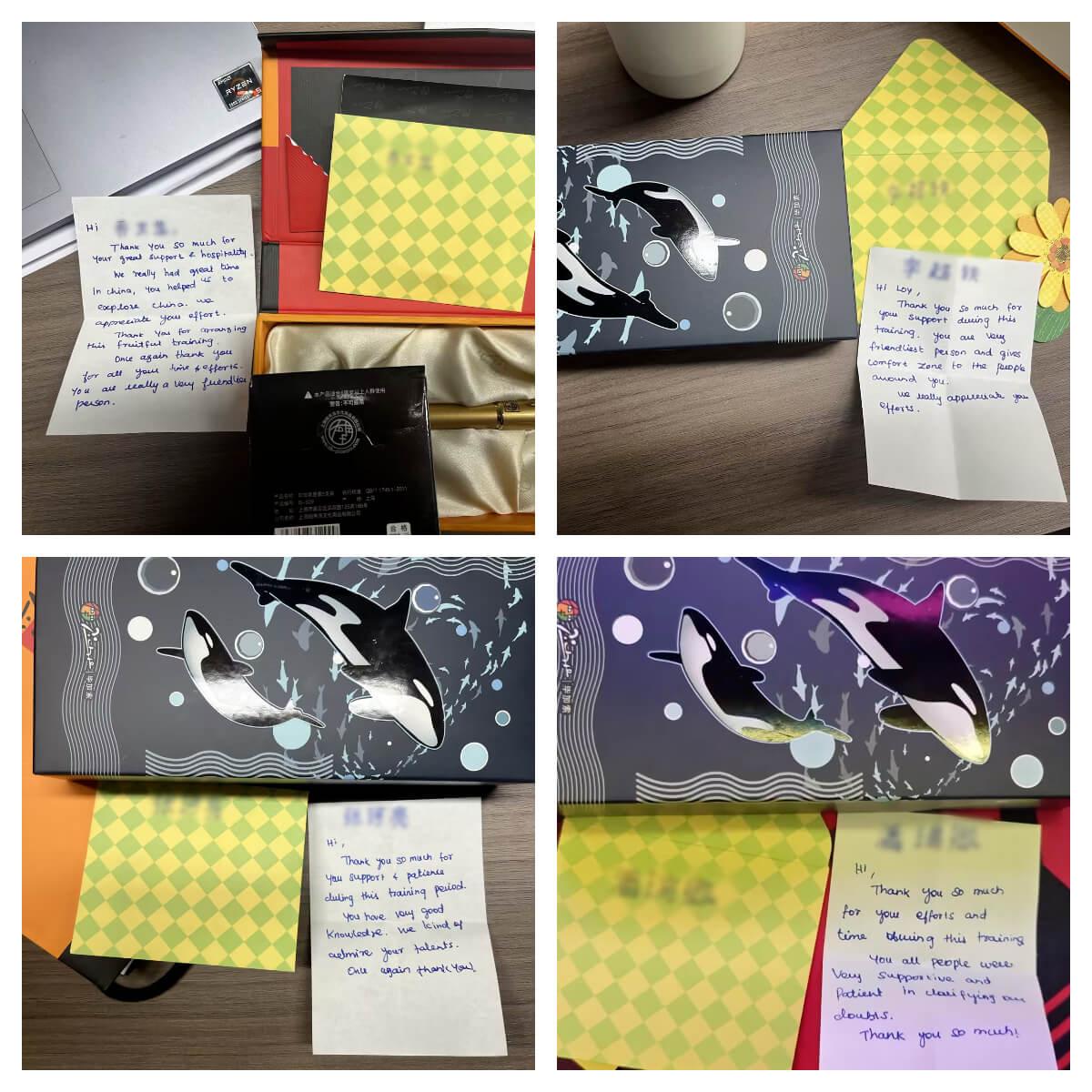 近日,金年会jinnianhui为来自海外的合作伙伴开展的定制化培训项目圆满收官。在这场为期半个月的深度交流中,双方不仅碰撞出专业领域的智慧火花,更在朝夕相处中结下深厚情谊。临别之际,客户代表向我司四位核心员工赠送了象征友谊的定制钢笔,并亲笔写下四封饱含谢意与真诚的贺卡,为这段跨国合作添上一抹温情注脚。