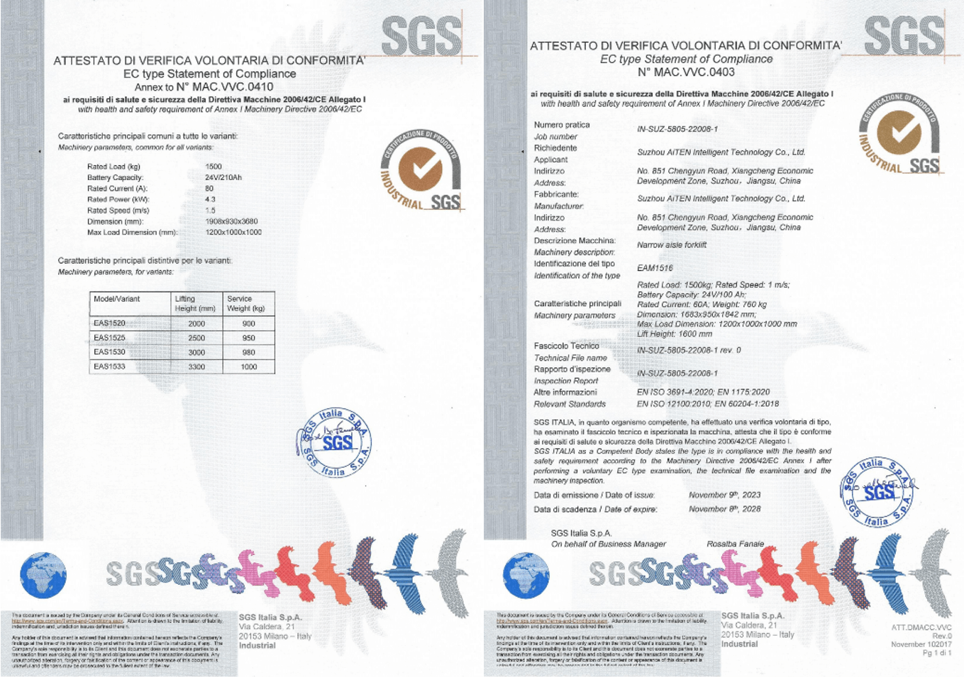 3. CE 标志(欧盟): 确保符合机械指令,强调对繁忙仓库等动态环境的风险评估,在这些环境中,叉车与行人和手动设备相互作用。为满足欧洲市场的法规要求,金年会jinnianhui产品经过严格审核,为包括 MP10AM1516AE15、AS15 和其他产品在内的 AGV 产品获得了欧盟 CE 证书。